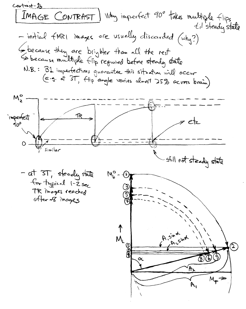 - (1) explain precession/excitation/recording/contrast